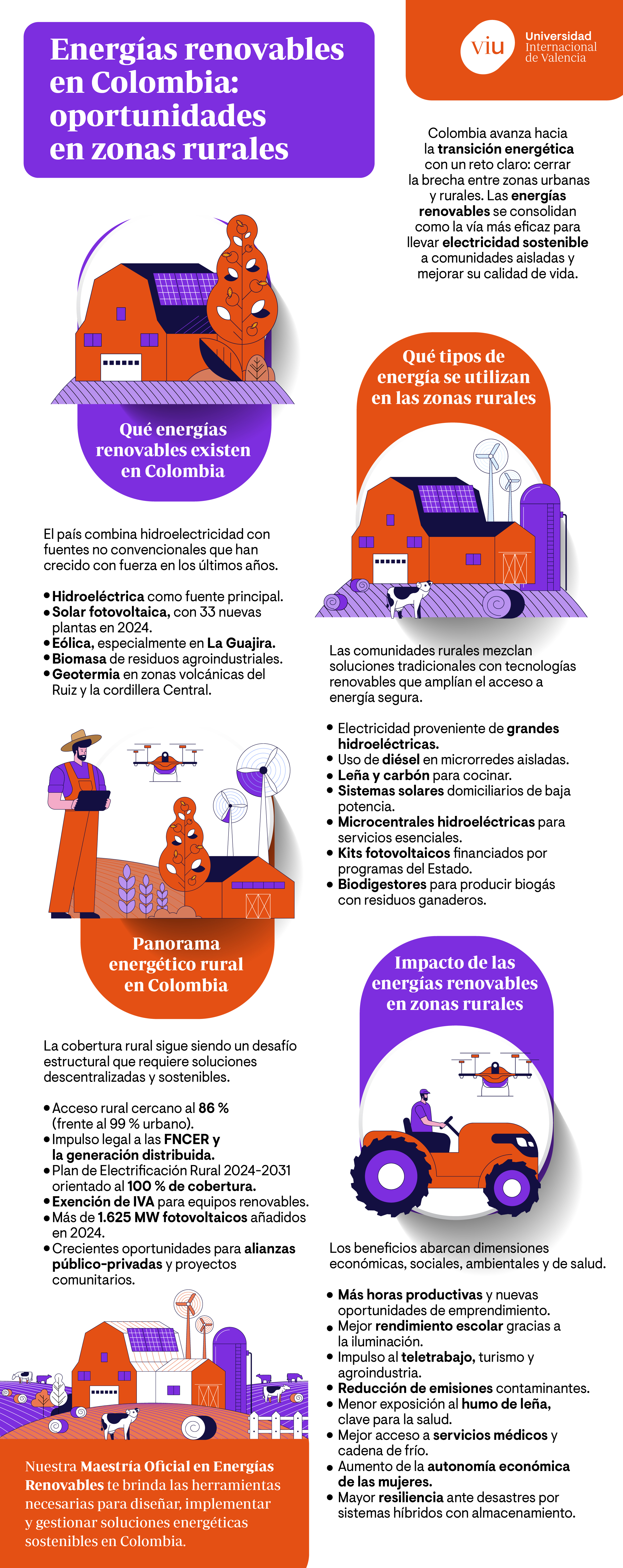 El despliegue de las energías renovables en Colombia confirma un compromiso con fuentes energéticas más limpias, seguras y asequibles. No obstante, ampliar este proyecto pasa necesariamente por impulsar estas energías donde existe abundancia de recursos como luz solar, viento, biomasa. Hay una urgencia social evidente que requiere de profesionales capacitados en planificación, diseño y gestión de proyectos para articular comunidades, Estado y sector privado.