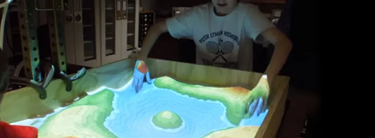 Las llamadas augmented-reality sandbox consisten en la proyección de un mapa sobre una caja llena de arena de modo que cuando los niños mueven la área las líneas topográficas se ajustan permitiendo una comprensión de los cambios topográficos y el desplazamiento del agua.