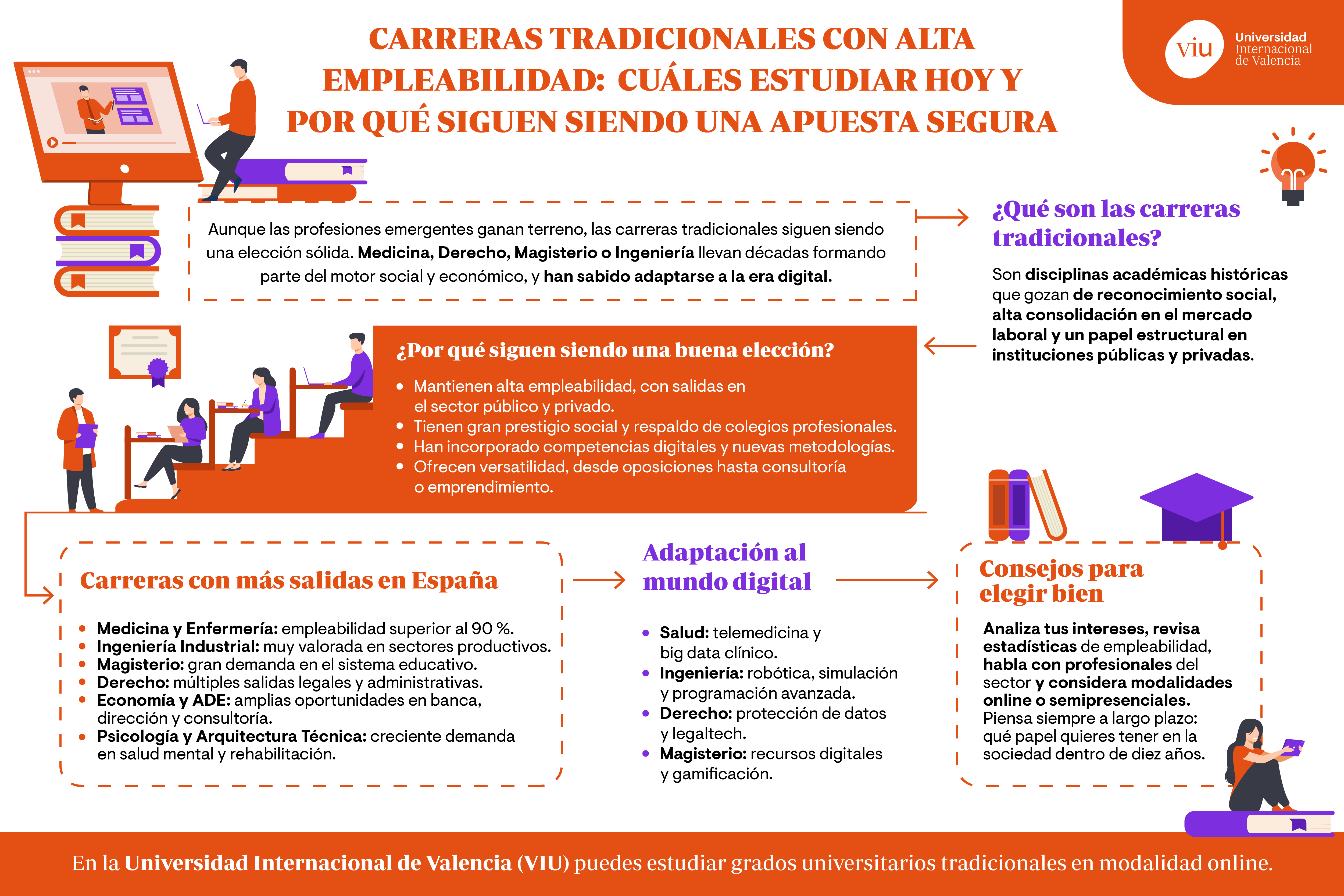 La idea de que los estudios universitarios tradicionales están obsoletos es un mito que merece ser desmontado. La realidad es que muchas de estas carreras siguen siendo el motor de la sociedad. ¿Qué sería del mundo sin médicos, profesores, abogados, ingenieros o economistas? Además, muchas de estas profesiones han sabido reinventarse e integrar competencias digitales, nuevas tecnologías y metodologías innovadoras que las hacen más relevantes que nunca.