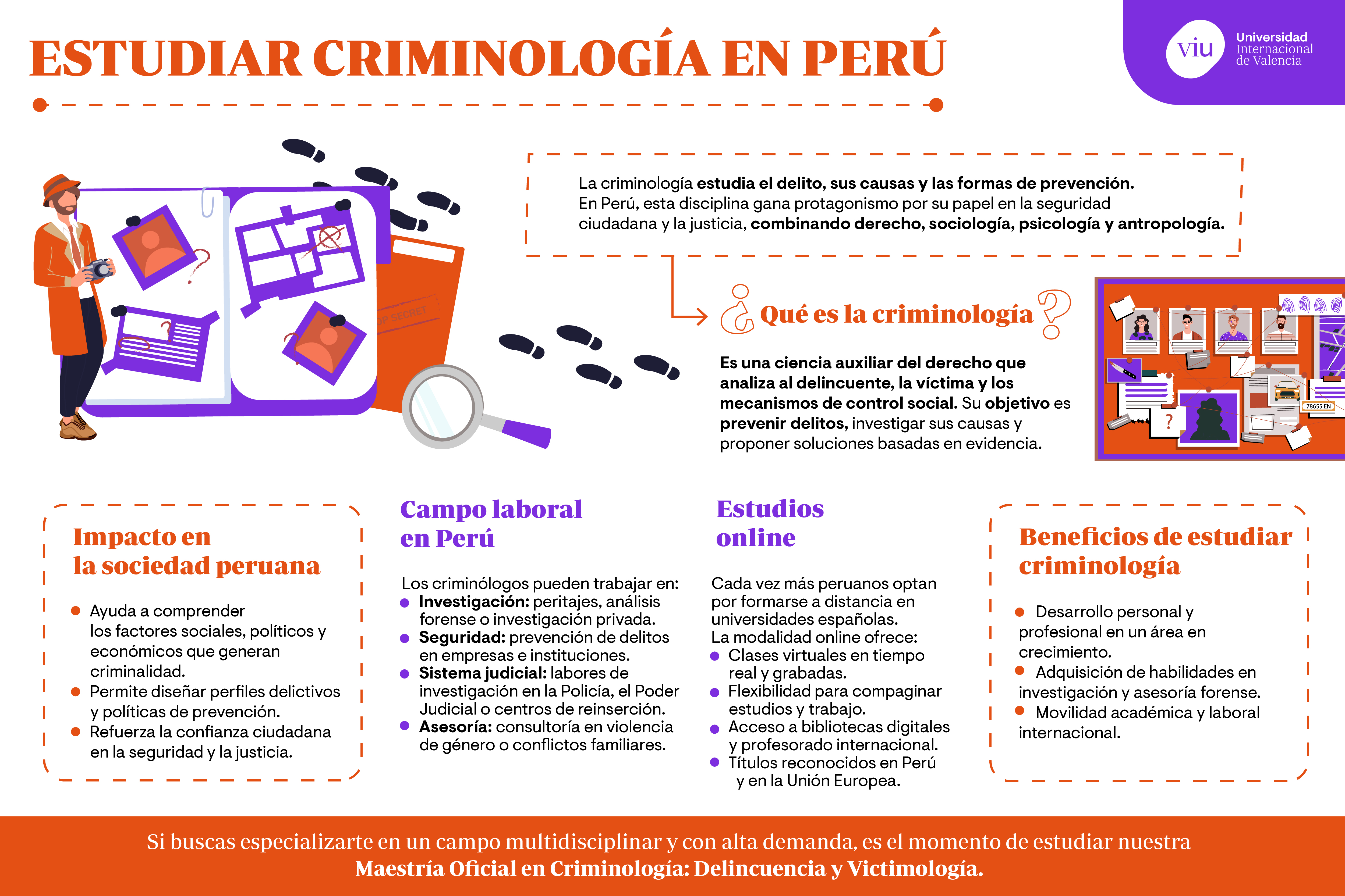 Cada vez más profesionales peruanos optan por la modalidad de estudio a distancia para continuar su formación académica sin necesidad de viajar al extranjero. Si buscas especializarte en el ámbito de la justicia y la seguridad, una maestría en Criminología online en una universidad española es una excelente alternativa. Estas instituciones ofrecen programas flexibles, con clases virtuales en tiempo real, acceso a bibliotecas digitales y docentes de prestigio internacional. Desde Perú puedes acceder a un plan de estudios actualizado, enfocado en criminología, criminalística y políticas públicas, compatibilizando tu formación con el trabajo y la vida personal. Además, contar con un título europeo amplía tus oportunidades laborales tanto en el país como a nivel internacional.