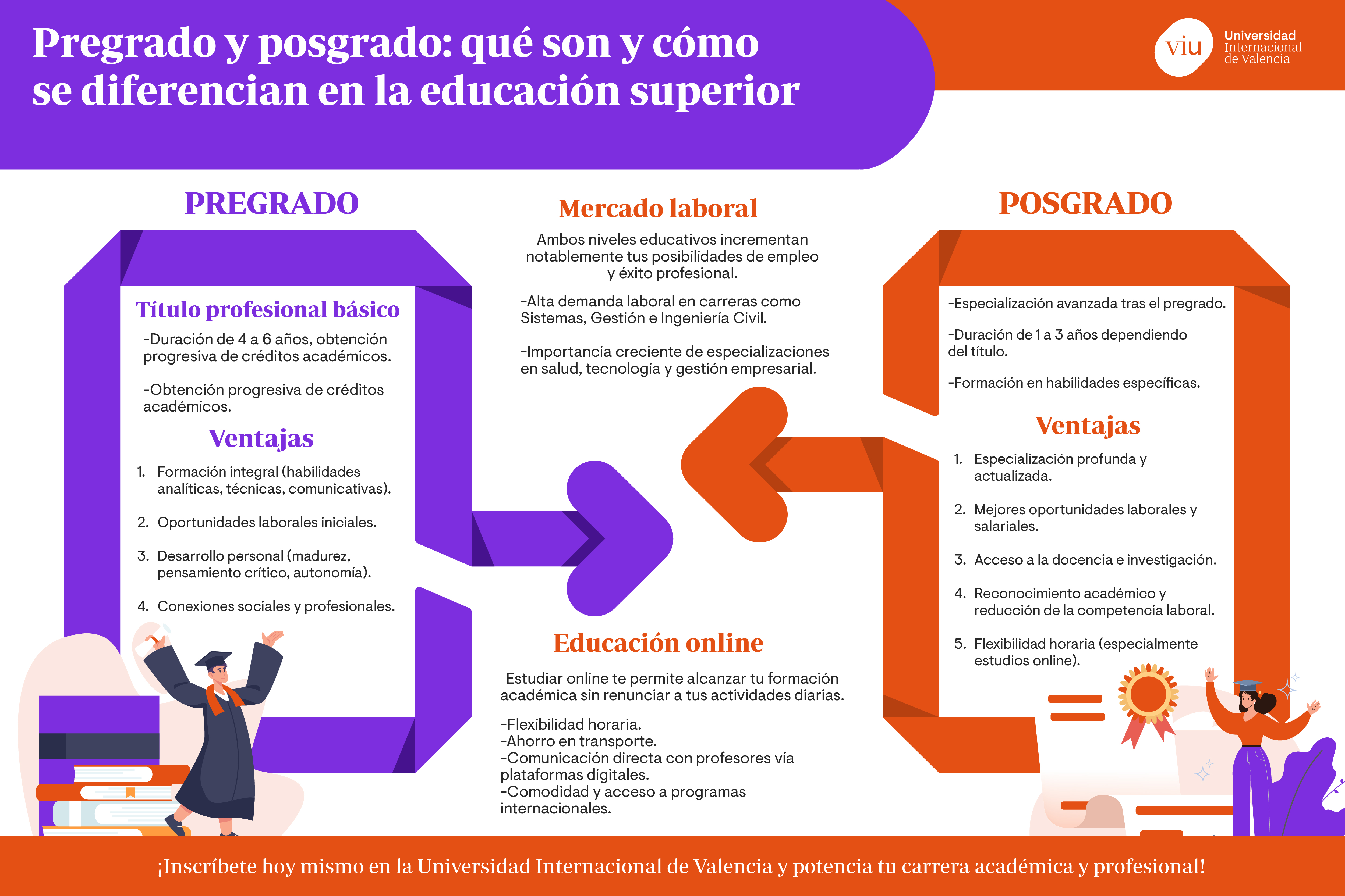 En conclusión, comprender la diferencia entre pregrado y posgrado es fundamental para planificar una trayectoria académica exitosa. Ambos niveles son complementarios y responden a distintas etapas de crecimiento personal y profesional. Por esta razón, ¡no esperes más e inscríbete hoy mismo en la Universidad Internacional de Valencia! Descubre a profundidad la diferencia entre pregrado y posgrado, y cómo nuestra oferta de formación te ayudará a destacar en tu profesión. Contamos con una cobertura académica para las carreras con mayor demanda a nivel global. Ofrecemos títulos válidos en muchos países y un equipo docente de alta calidad.